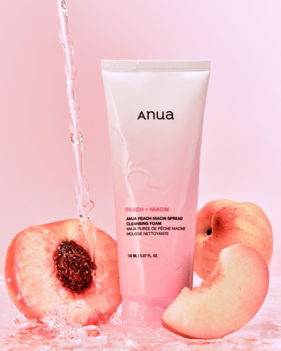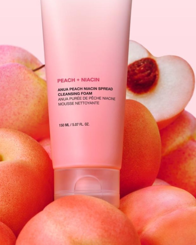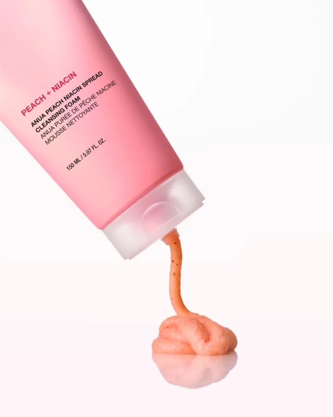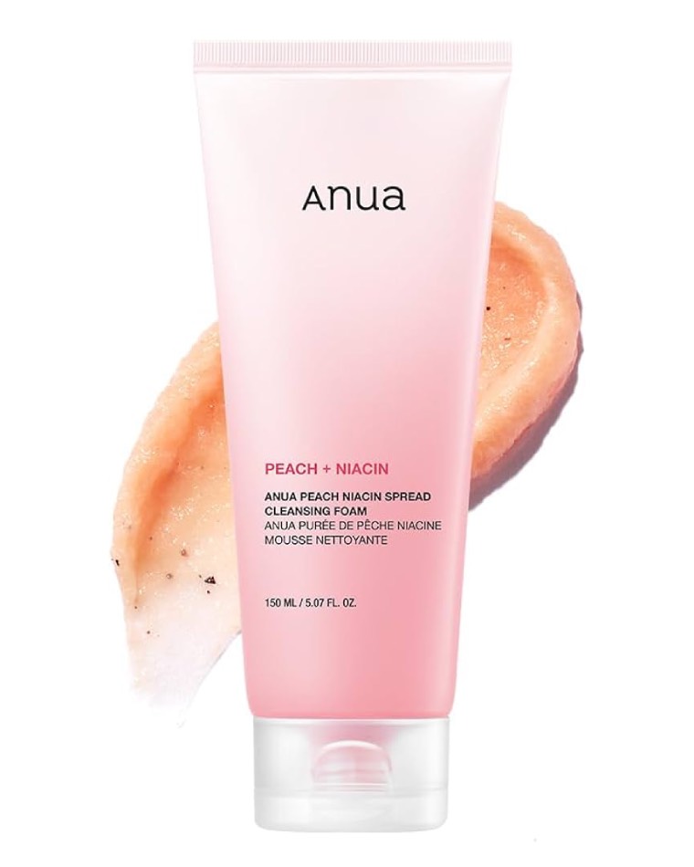Anua Peach Niacin Spread Cleansing Foam — деликатная очищающая пенка с экстрактом персика и ниацинамидом, эффективно очищает поры и придаёт коже естественное сияние.