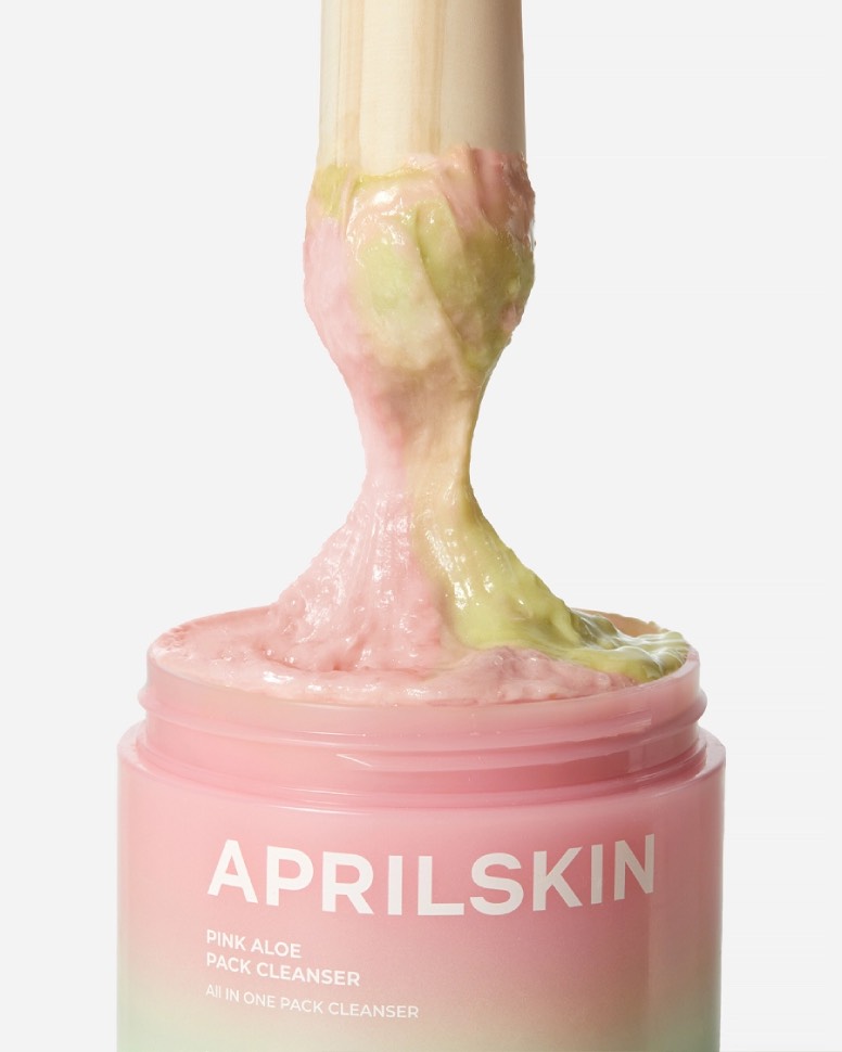 APRILSKIN Pink Aloe Pack Cleanser – este un produs multifuncțional care combină curățarea delicată cu efectul de mască, oferind pielii purificare, hidratare și calmare într-un singur pas