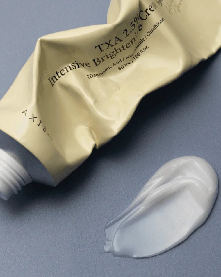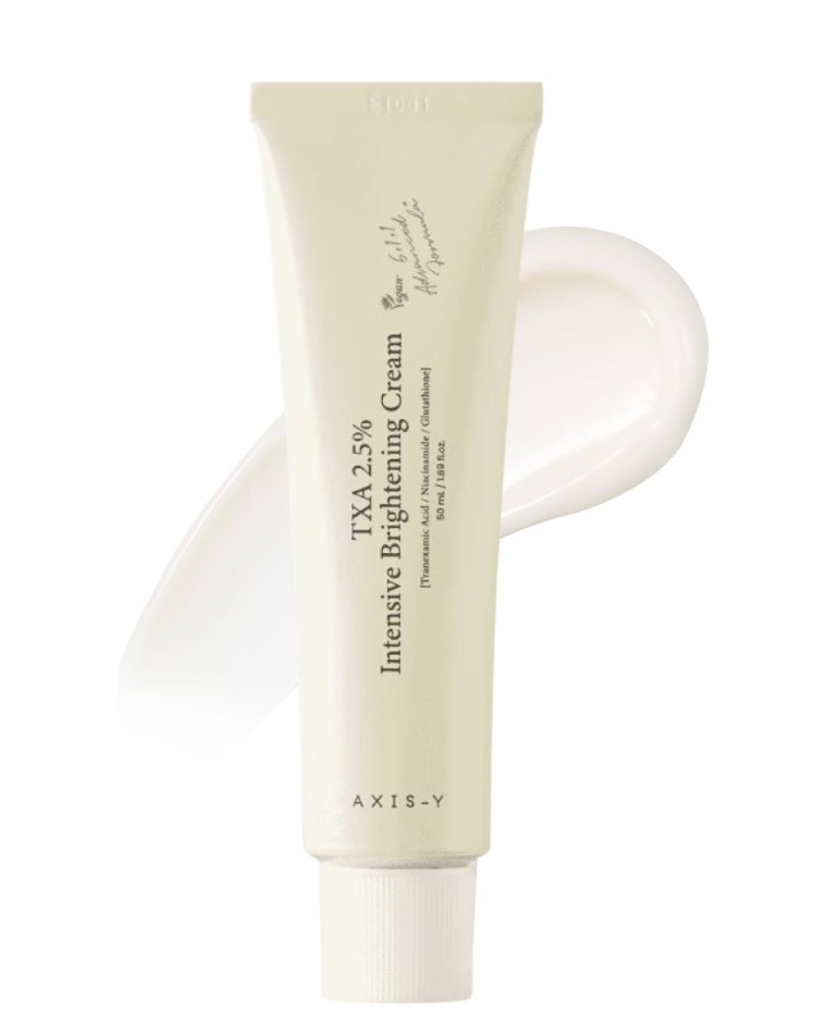 AXIS-Y TXA 2.5% Intensive Brightening Cream — осветляющий крем с двумя целыми пятью процента транексамовой кислоты. Уменьшает тусклость кожи и выравнивает тон. Подавляет образование меланина на клеточном уровне, заметно снижает выраженность пигментных пятен и помогает предотвратить их появление.