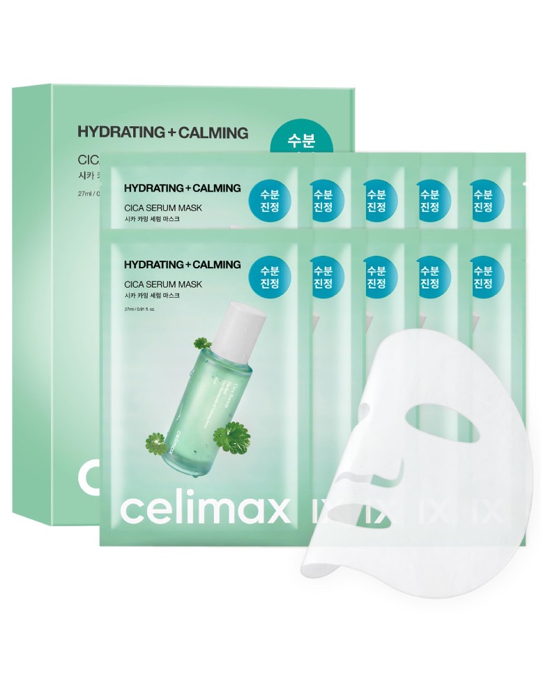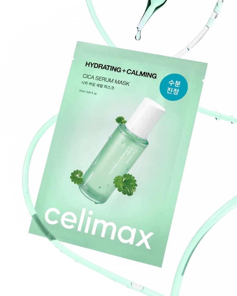 Маска Celimax Hydrating+Calming Cica Serum Mask – обеспечивает мгновенный успокаивающий эффект и глубокое увлажнение, заметно уменьшая покраснение, раздражение и дискомфорт.