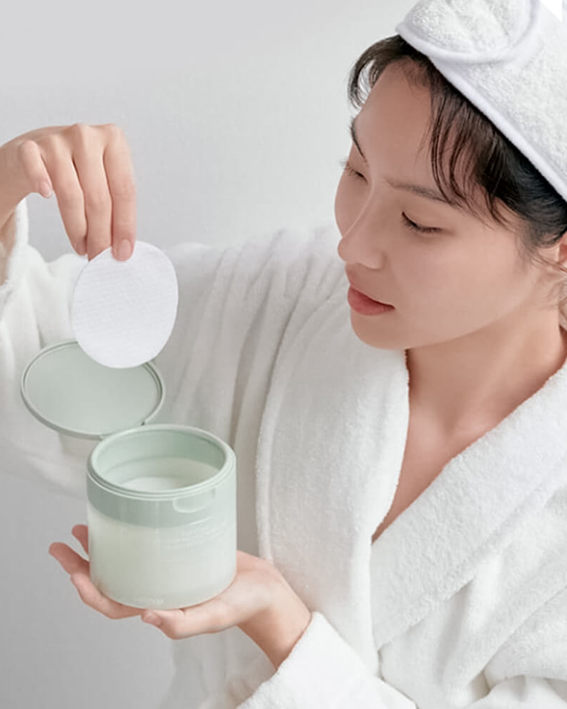Протрите лицо диском, начиная с текстурированной стороны для мягкого отшелушивания, затем используйте гладкую сторону для завершения очищения. При необходимости продолжите очищение гелем или пенкой.