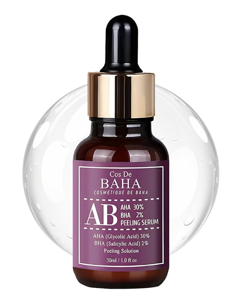 Cos De BAHA AB AHA 30% BHA 2% Peeling Serum – este un ser exfoliant intensiv care ajută la curățarea profundă a porilor, îndepărtarea celulelor moarte și uniformizarea texturii pielii