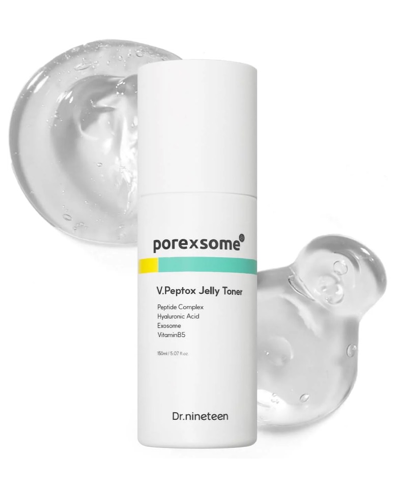 Dr.nineteen Porexsome V.Peptox V.Peptox Jelly Toner – тонер с желеобразной текстурой, предназначенный для интенсивного увлажнения, успокоения и поддержания баланса влажности кожи.