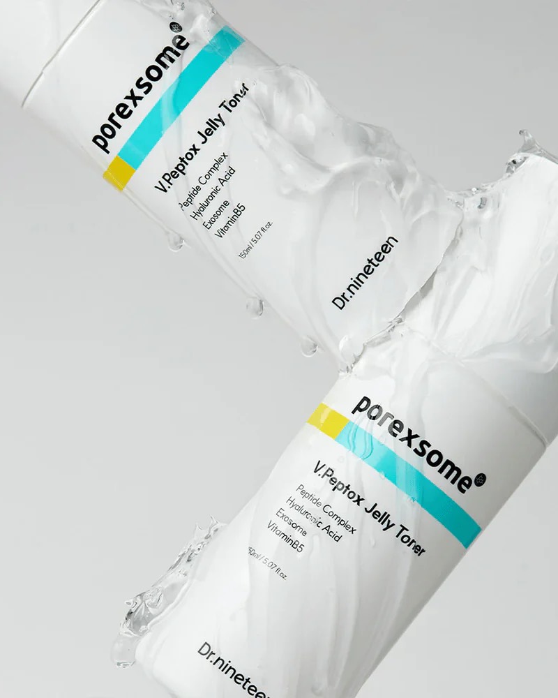Dr.nineteen Porexsome V.Peptox Jelly Toner – este un toner cu textură gel-jelly creat pentru a hidrata intens, calma și echilibra nivelul de umiditate al pielii