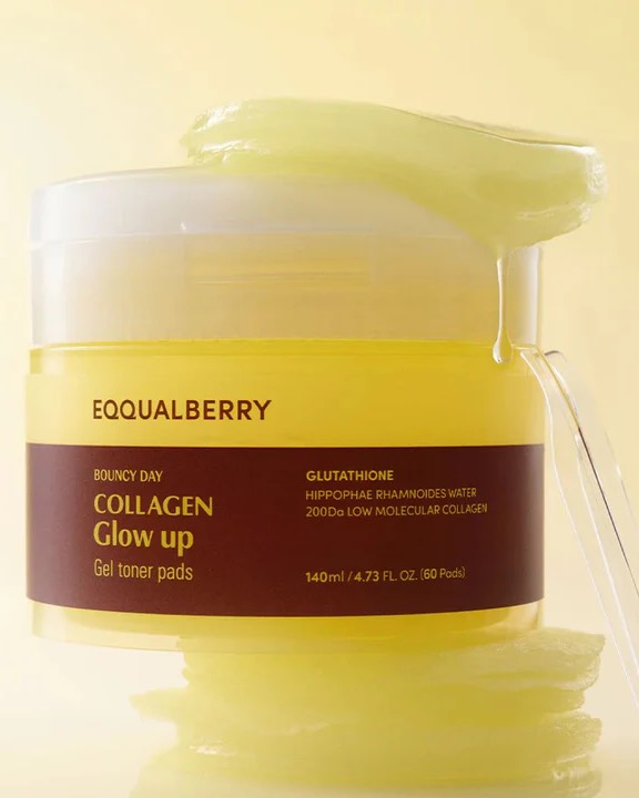 EQQUALBERRY Collagen Glow Up Gel Toner Pads – Дисковые тоники с эффектом сияния и упругости