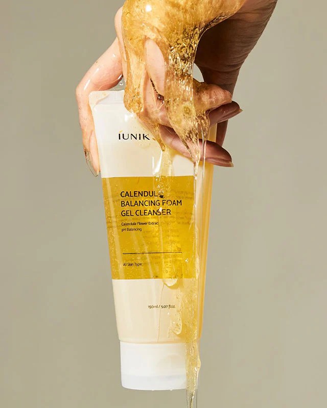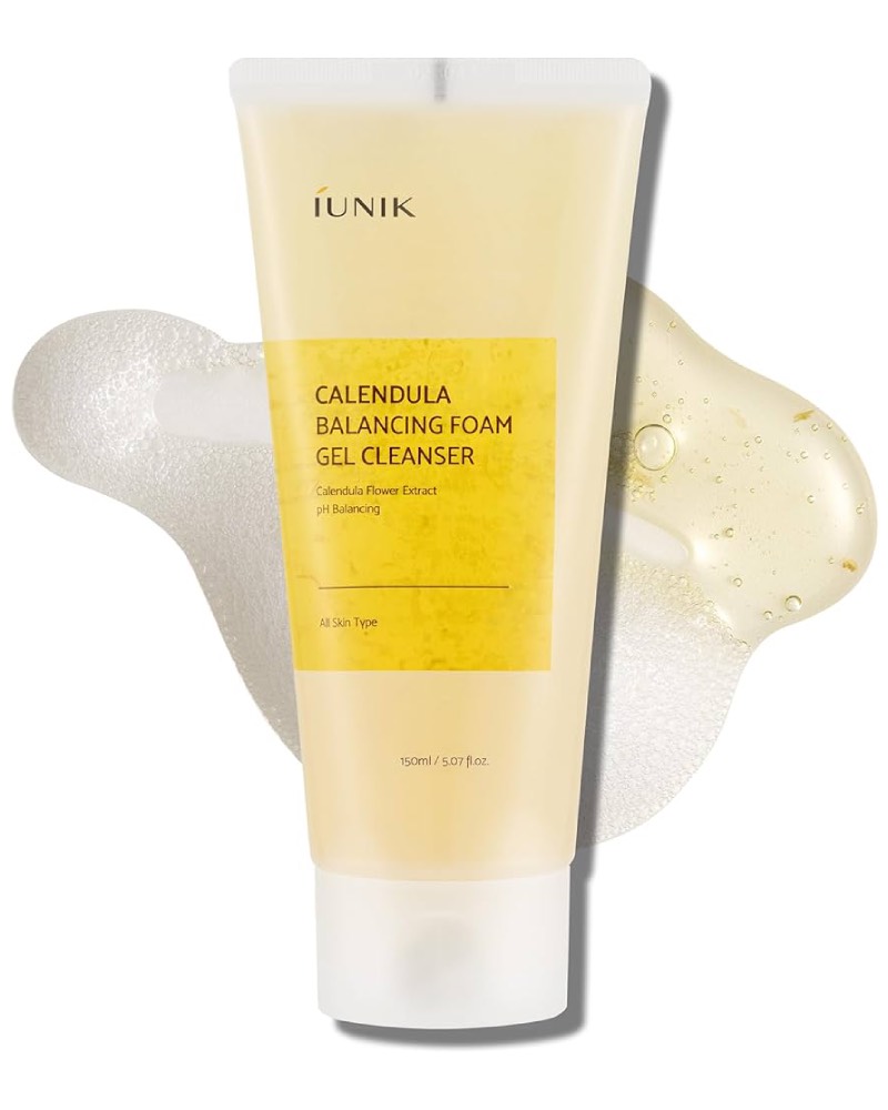 iUNIK Calendula Balancing Foam Gel Cleanser — мягкий гель для умывания, разработанный для балансировки и увлажнения кожи, оставляя её чистой и комфортной.