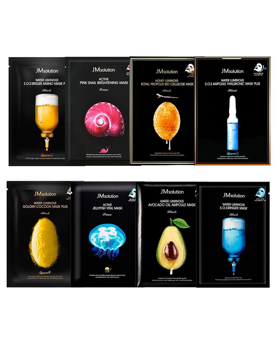JM Solution Sheet Mask – Snail • Avocado • S.O.S Ampoule Hyaluronic • Golden Cocoon • Royal Propolis • Flower Firming • S.O.S Ringer • Jellyfish Vital • Water Luminous S.O.S Ampoule Mask Plus
