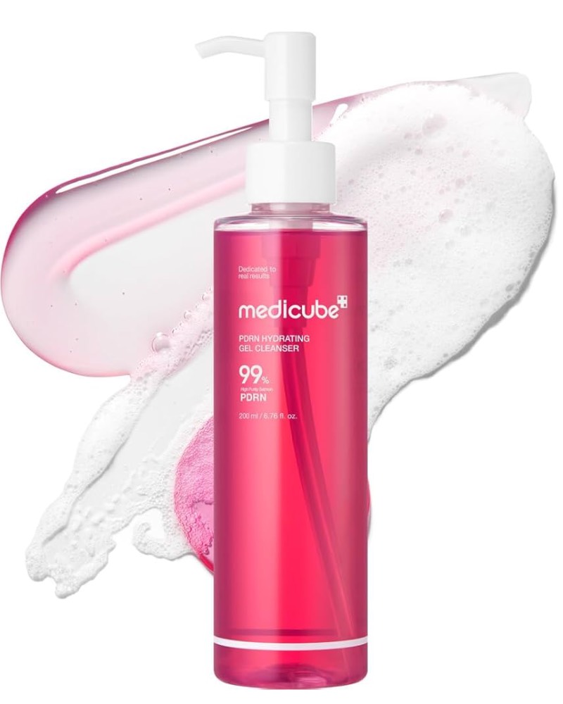 Medicube PDRN Hydrating Gel Cleanser – Гель для умывания мягко удаляет загрязнения, остатки макияжа и избыточный себум, не вызывая сухости и ощущения стянутости кожи.