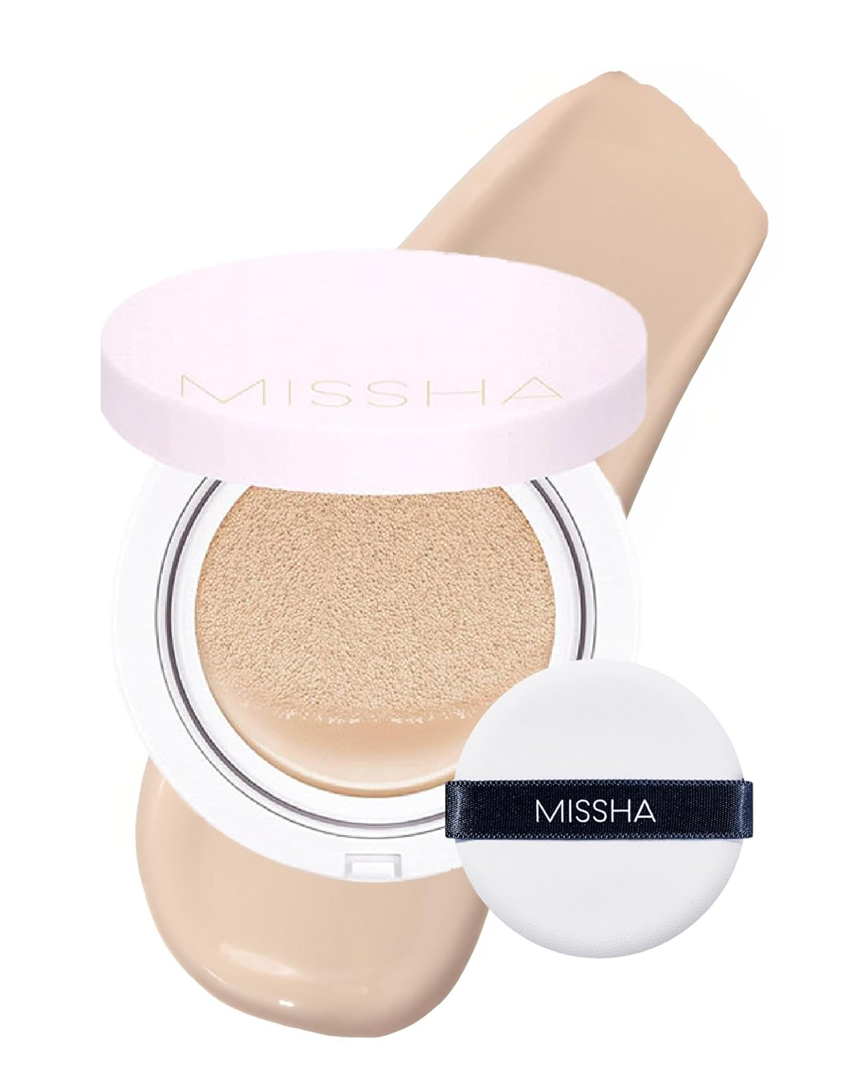 Missha Magic Cushion Cover Lasting este un fond de ten tip cushion cu acoperire ridicată, care uniformizează tonul pielii și ascunde imperfecțiunile, oferind un finisaj natural și de lungă durată. Datorită formulei sale inovatoare și a aplicatorului tip burete poros, produsul se distribuie uniform pe piele, asigurând un aspect neted și fără efect de mască.