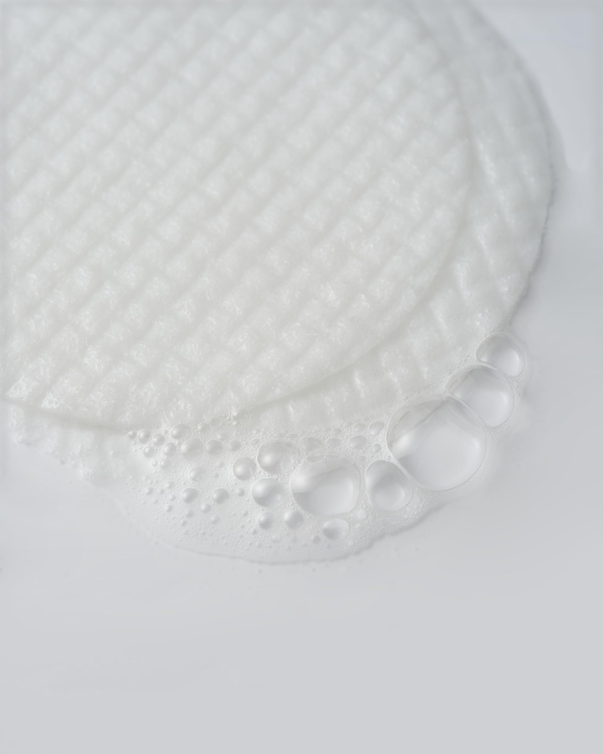 Аккуратно протрите лицо диском, используя текстурированную сторону для удаления макияжа и загрязнений. Смывать не требуется, но можно продолжить обычный уход.