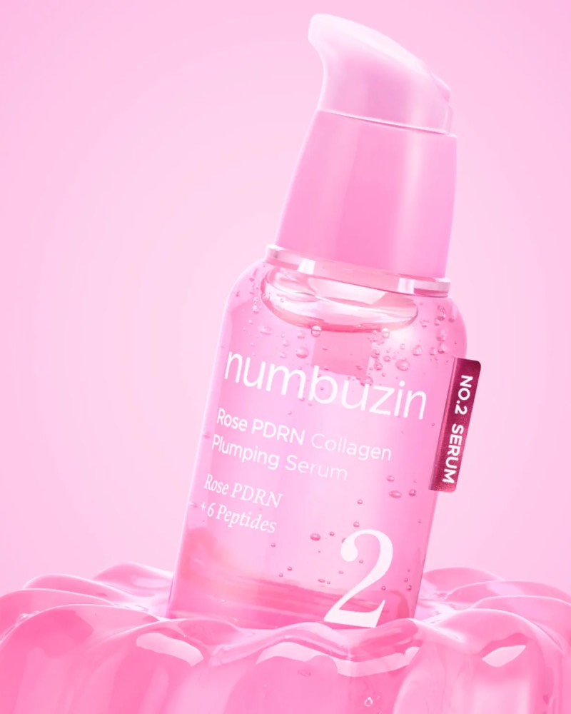 Ser cu PDRN și peptide numbuzin No.2 Rose PDRN Collagen Plumping Serum oferă hidratare profundă și regenerarea pielii. Crește fermitatea și elasticitatea, consolidează contururile feței și previne ptoza.