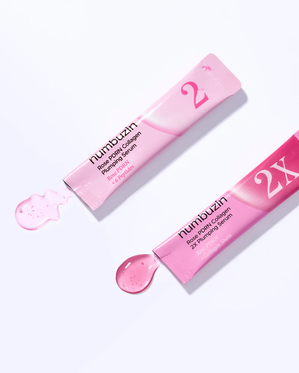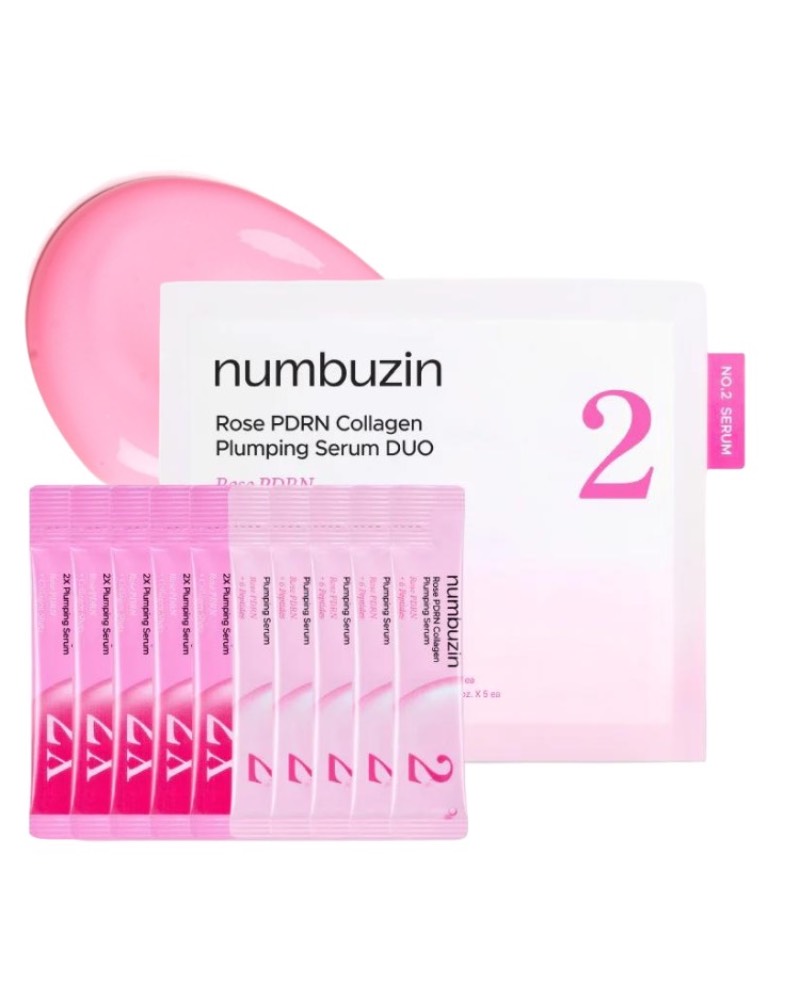 No.2 Rose PDRN Collagen 2X Plumping Serum: Collagen Water (54.17 %), Water, Glycereth-26 Butylene Glycol, Glycerin, Niacinamide (5 %), Propanediol, Dipropylene Glycol, 1,2-Hexanediol, Diethoxyethyl Succinate, PEG-240/HDI Copolymer Bis-Decyltetradeceth-20 Ether, Polyacrylate Crosspolymer-6, Trehalose, Octyldodeceth-16, Methyl Diisopropyl Propionamide, Gardenia Florida Fruit Extract, Ethylhexylglycerin, Rosa Damascena Flower Extract (0.1 %), Sodium DNA (0.1 %), Pentaerythrityl Tetraisostearate, Pullulan, Polyglyceryl-10 Oleate, Adenosine, Octyldodecanol, Hydrolyzed Sponge, Morus Alba Bark Extract, Hydrogenated Lecithin, Artemisia Capillaris Extract, Camellia Sinensis Leaf Extract, Caprylic/Capric Triglyceride, Sodium Hyaluronate Crosspolymer, Hydrolyzed Glycosaminoglycans, Disodium EDTA, Polysorbate 20, Sodium Hyaluronate, Cyanocobalamin, Lecithin, Tocopherol, Potassium Laurate, Benzyl Glycol, Hyaluronic Acid, Caprylyl Glycol, Propylene Carbonate, Resveratrol, Polylactic Acid, Stearalkonium Hectorite, Hydrolyzed Hyaluronic Acid, Acetyl Hexapeptide-1, Silica, Sodium Ascorbyl Phosphate, Hydrolyzed Collagen, Acetyl Hexapeptide-8, Acetyl Octapeptide-3, Tripeptide-1, Tripeptide-2, Palmitoyl Pentapeptide-4, Palmitoyl Tetrapeptide-7, Palmitoyl Hexapeptide-12, Raspberry Ketone, Coptis Chinensis Root Extract, Copper Tripeptide-1, Palmitoyl Tripeptide-1, Tripeptide-3, sh-Oligopeptide-1, sh-Polypeptide-1, sh-Polypeptide-11, sh-Polypeptide-22.