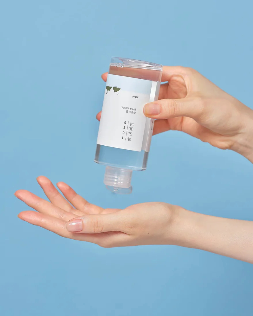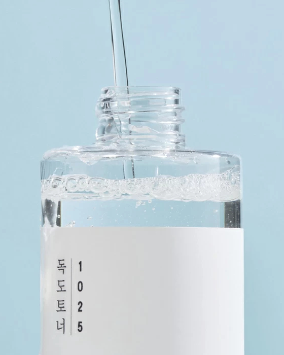 Round Lab 1025 Dokdo Toner echilibrează pH-ul pielii, menține nivelul optim de hidratare și reglează producția de sebum. Formula sa delicată curăță porii, dizolvă dopurile de sebum și îndepărtează celulele moarte ale pielii, contribuind la o textură mai netedă și un aspect uniform al tenului.