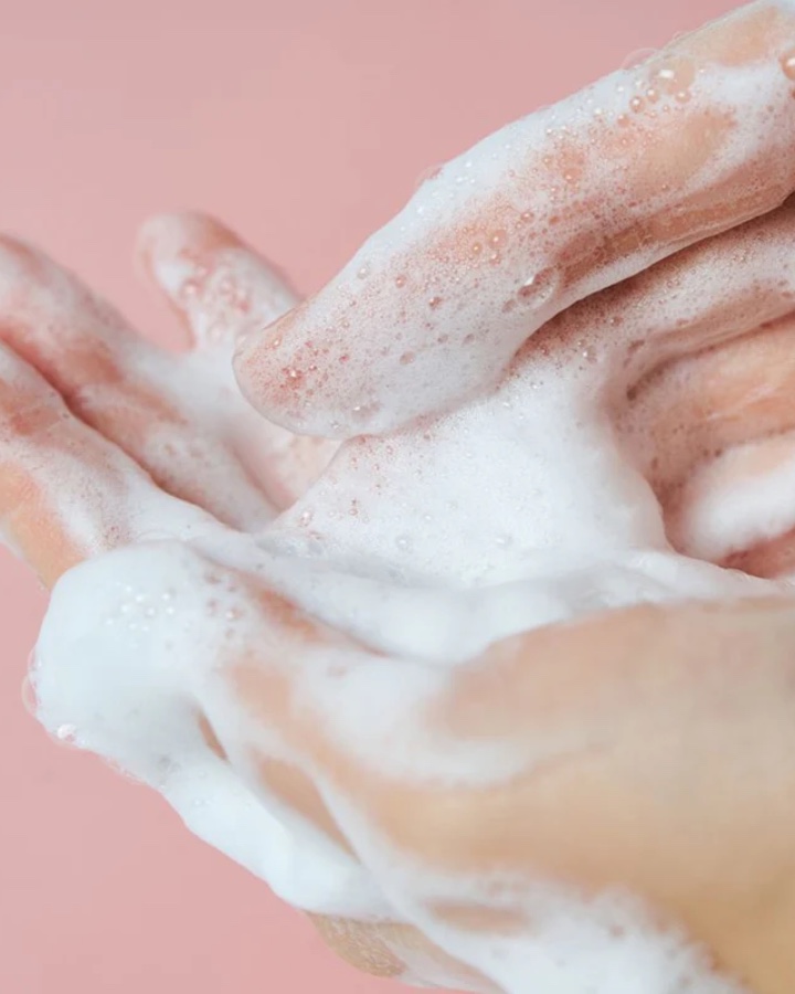 Masează o cantitate mică în palmele umede până se formează spumă bogată. Aplică pe față cu mișcări circulare, evitând zona ochilor, apoi clătește cu apă rece sau călduță. Folosește dimineața și/sau seara ca prim pas al rutinei de curățare.
