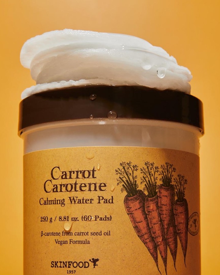 Skinfood Carrot Carotene Calming Water Pad – dischete tonice calmante cu morcov și beta-caroten pentru piele sensibilă