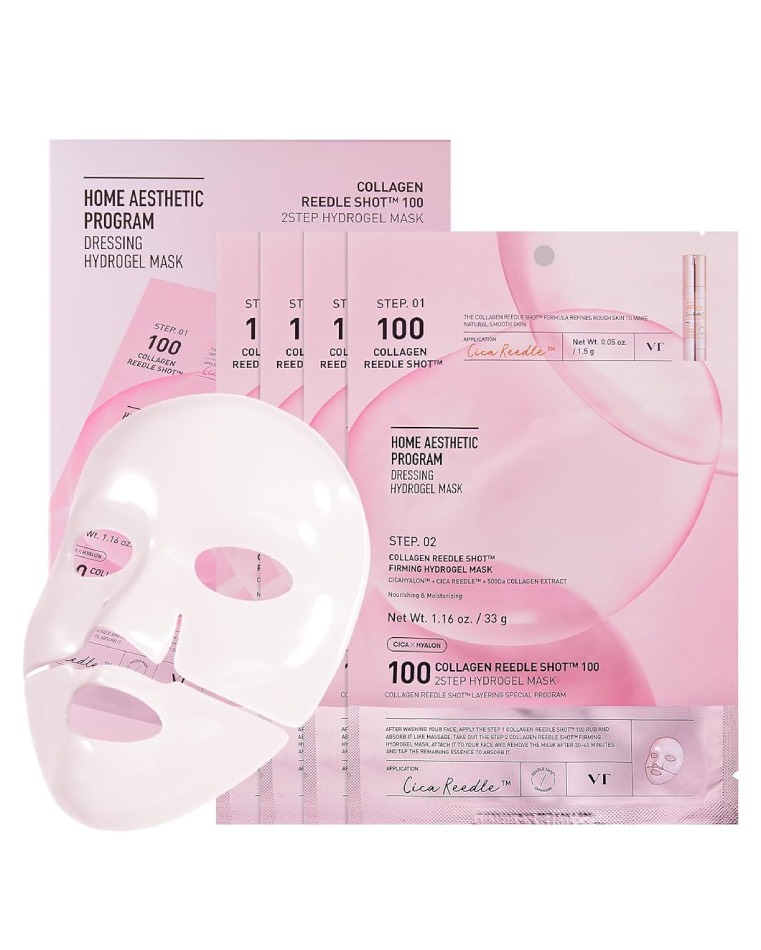 Mască hidrogel în două faze cu colagen VT Cosmetics Collagen Reedle Shot 100 2Step Hydrogel Mask – Este un produs expres pentru refacerea rapidă a pielii. Hidratează intens, elimină descuamarea, reduce aspectul tern, crește fermitatea și elasticitatea pielii.