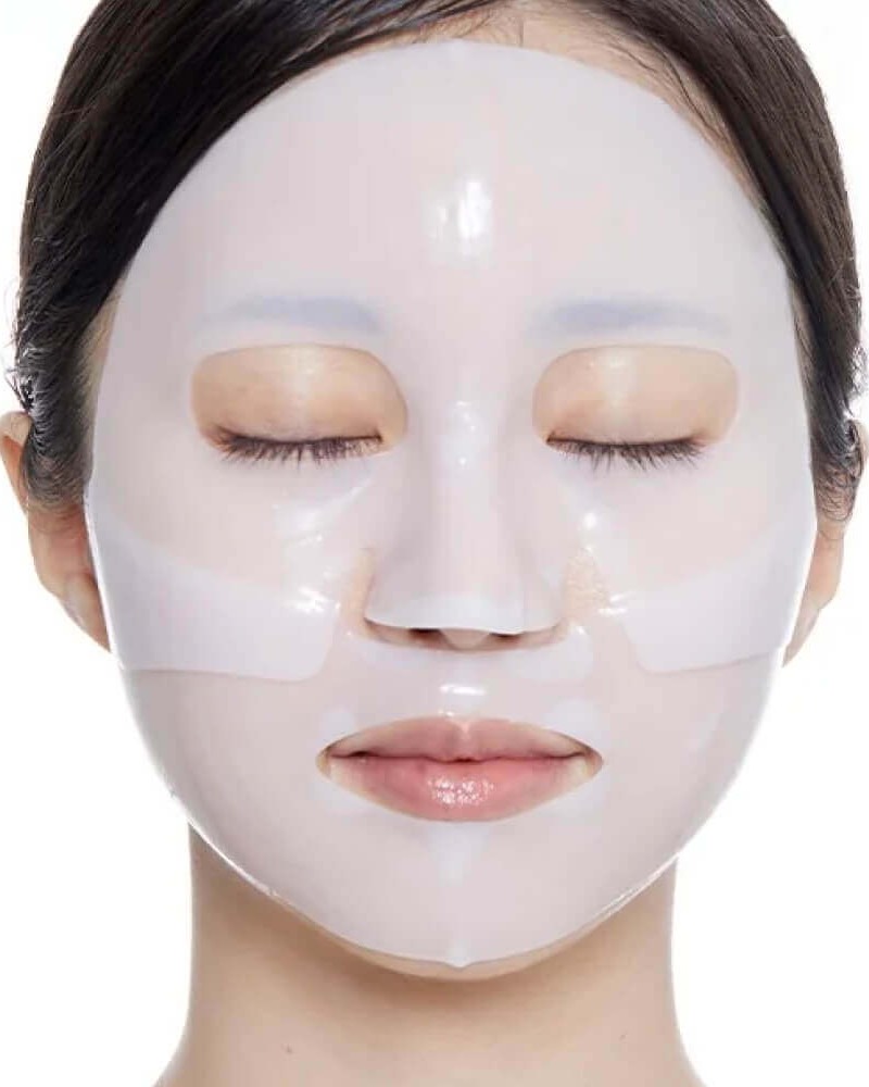 Шаг 2: отделите гидрогелевую маску от защитной плёнки, нанесите обе части на лицо, аккуратно разгладьте и слегка прижмите. Оставьте на 20–40 минут, пока маска не станет прозрачной. Снимите маску, не смывая остатки эссенции, и продолжайте уход.