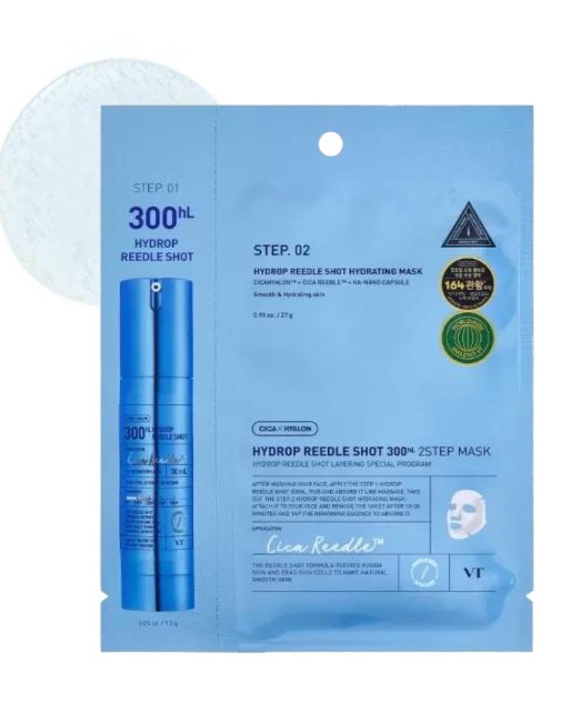 VT Cosmetics Hydrop Hydrop Reedle Shot 300 HL 2-Step Mask 27g – интенсивно увлажняющая двухступенчатая маска с микровоском для гладкой и эластичной кожи