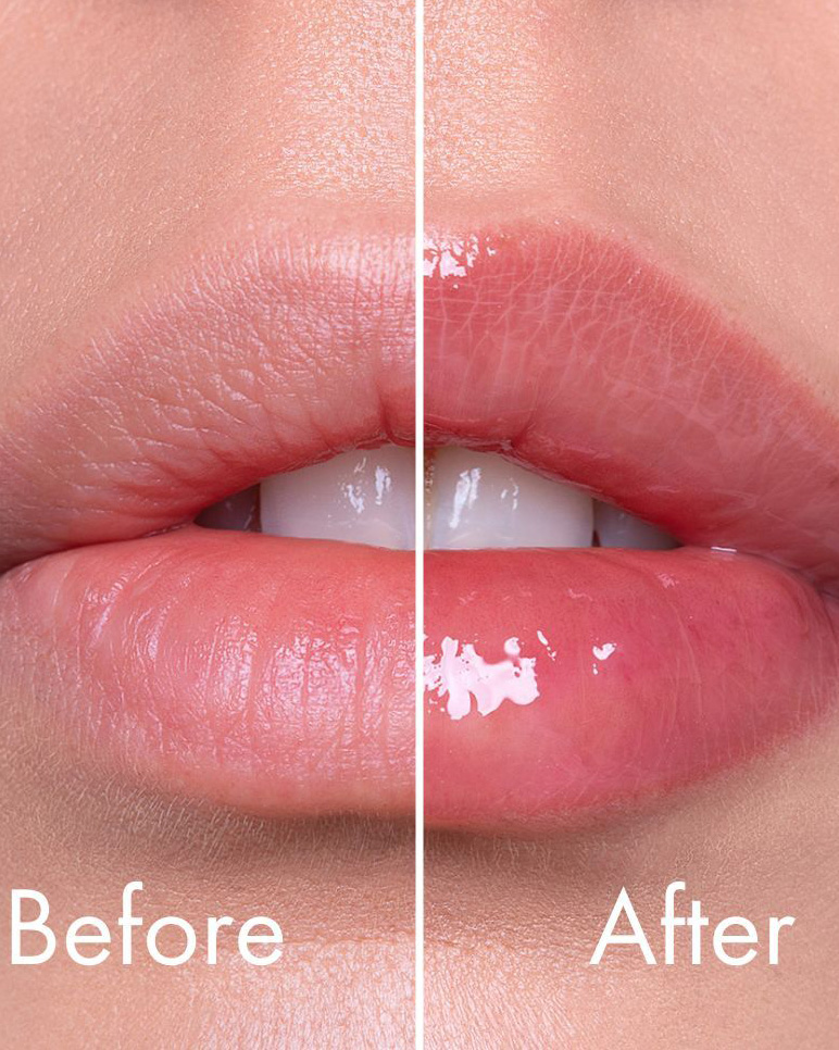 Acidul hialuronic hidratează intens, îmbunătățește elasticitatea și netezește suprafața buzelor.