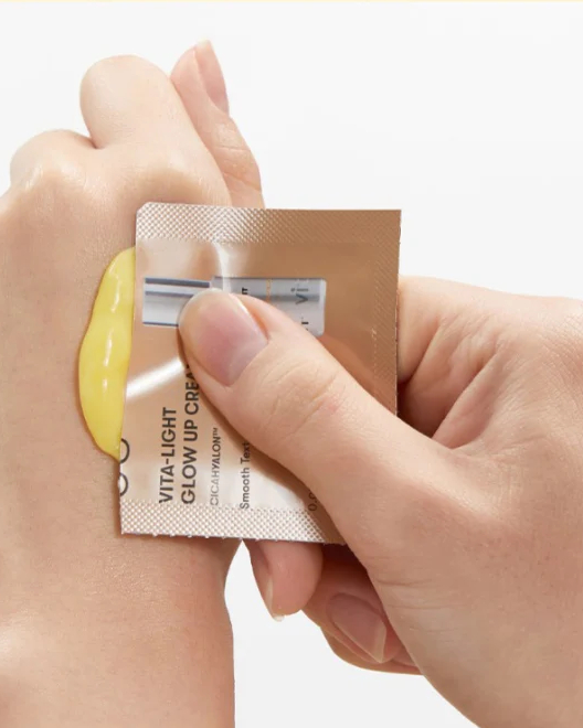 Cremă : Water, Glycerin, Caprylic/Capric Triglyceride, Hydrogenated Poly(C6-14 Olefin), Butylene Glycol, Ascorbic Acid, Dipropylene Glycol, Dicaprylyl Carbonate, Diisostearyl Malate, Butyrospermum Parkii (Shea) Butter, Cetearyl Olivate, Vinyl Dimethicone, Sorbitan Olivate, 1,2-Hexanediol, Stearyl Alcohol, Cetyl Alcohol, Sodium Polyacryloyldimethyl Taurate, Glyceryl Stearate, Saccharide Hydrolysate, alpha-bisabolol, Sodium Stearoyl Glutamate, Dimethiconol, Allantoin, Sodium Hydroxide, Tocopherol, Xanthan Gum, Fragrance, Ethylhexylglycerin, Glutathione, Dipotassium Glycyrrhizate, Beta-Glucan, Adenosine, Disodium EDTA, Sorbitol, Ferulic Acid, Myristyl Alcohol, Helianthus Annuus (Sunflower) Seed Oil, Lauryl Alcohol, Sucrose Stearate, Beta-Carotene, C12-14 Alketh-12, Polyacrylate Crosspolymer-6, Centella Asiatica Extract, Pentylene Glycol, Madecassoside, Ectoin, t-Butyl Alcohol, Sodium Hyaluronate, Propolis Extract, Madecassic Acid, Asiaticoside, Asiatic Acid